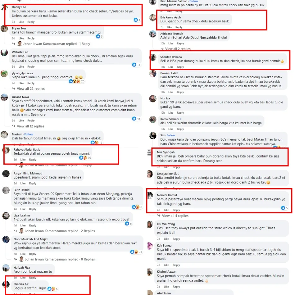 The post has been getting a lot of attention from netizens who all praised the supermarket brand and staff as they’ve experienced the same thing at other outlets. Some claimed that this was standard procedure at not only 99 Speedmart but for shops everywhere to check the items before selling them unless the customers themselves choose not to.