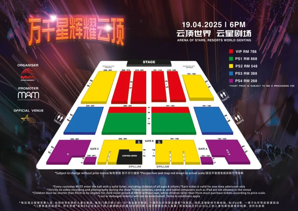 - Ticket Prices: VIP: RM788, PS1: RM668, PS2: RM548, PS3: RM388, PS4: RM268