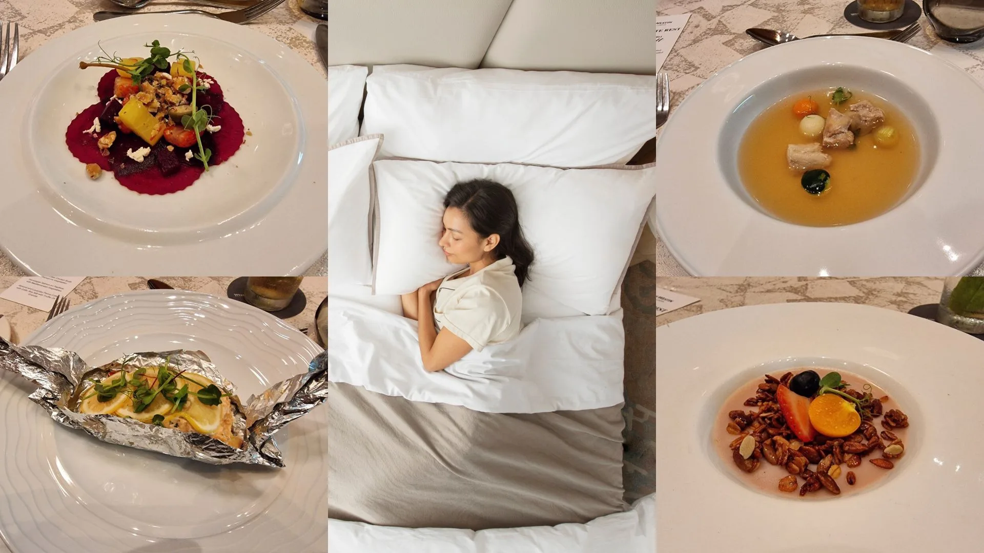 The hotel’s thoughtfully crafted 4-course menu to enhance relaxation and support a good night’s sleep is available for In-Room Dining at RMxxx per person and the menu includes: