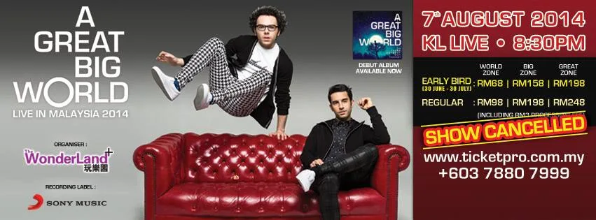 We hate to break this to you but the “A Great Big World Live in Malaysia” concert has been cancelled out of respect for the flight MH17 tragedy.