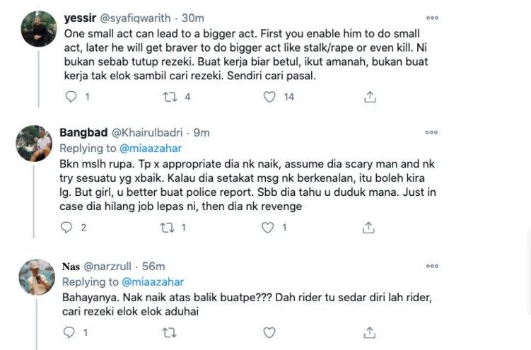 Following Mia’s revelation, many netizens criticised the rider over his improper behaviour. Some also suggested her to lodge a police report about the case.