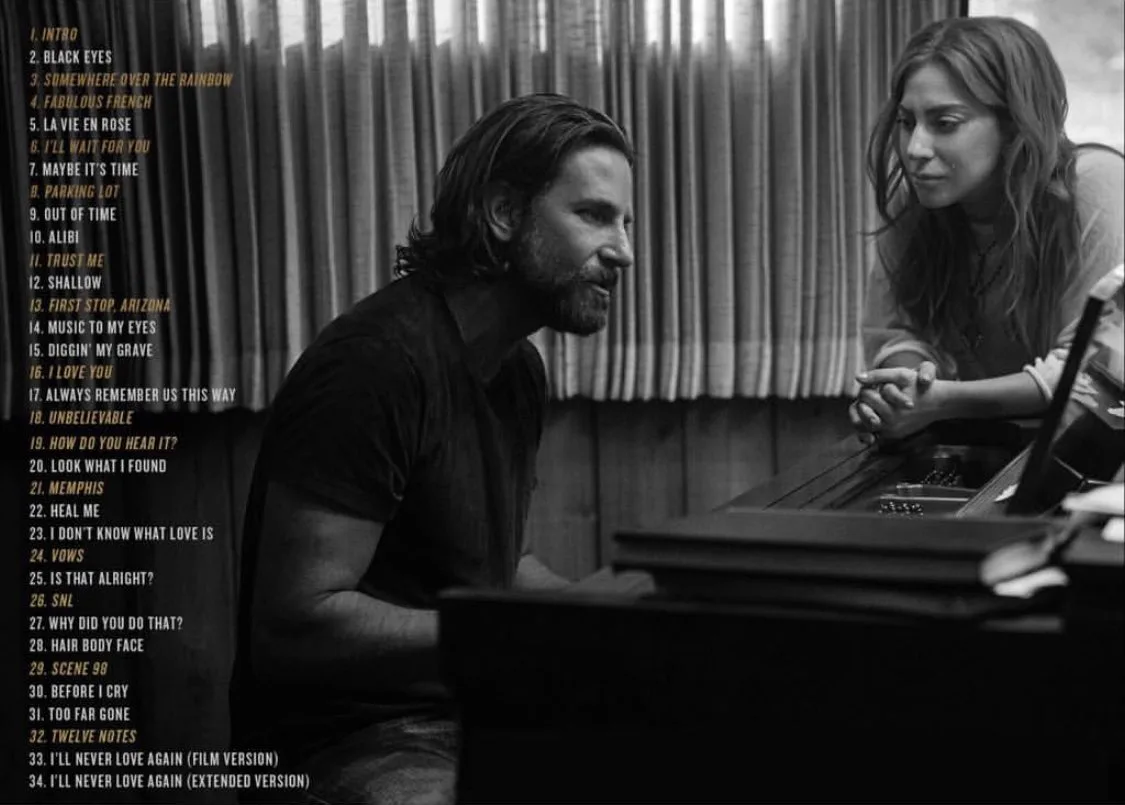 The “A Star Is Born” soundtrack features 5 Gaga/Cooper duets, 5 solo Cooper cuts, and 8 songs solely by Gaga. Here, you’ll find blaring blues-rockers, tender acoustic ballads, anthemic torch songs, as well as 2 super pop songs. Take a listen: