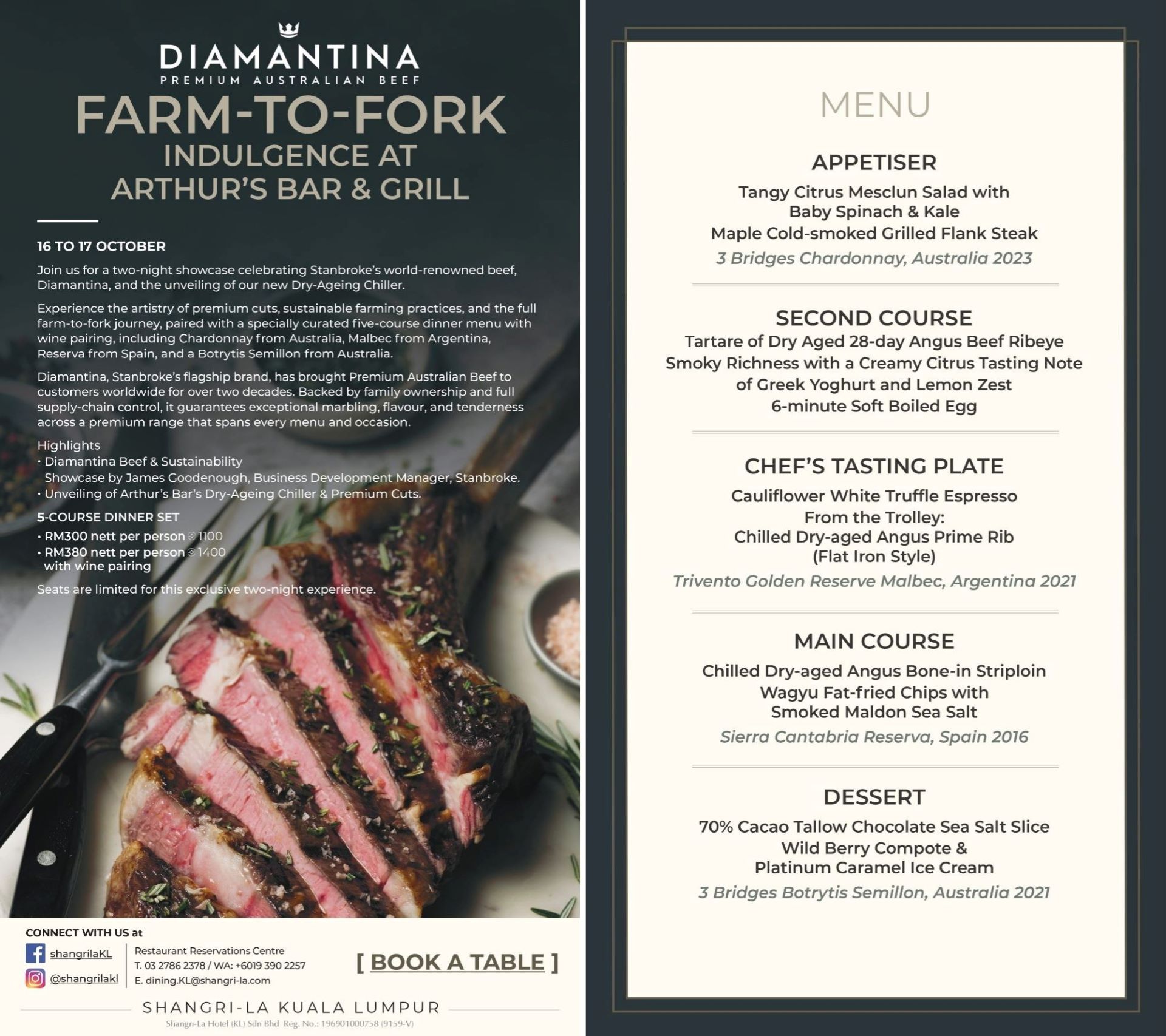 Each course is crafted to tell a story—one that begins on Queensland pastures and ends in the heart of Kuala Lumpur. Throughout the evening, James Goodenough of Stanbroke will share insights into the sustainable practices behind Diamantina beef, giving diners a rare behind-the-scenes look at how premium quality and environmental responsibility can coexist beautifully on a plate.