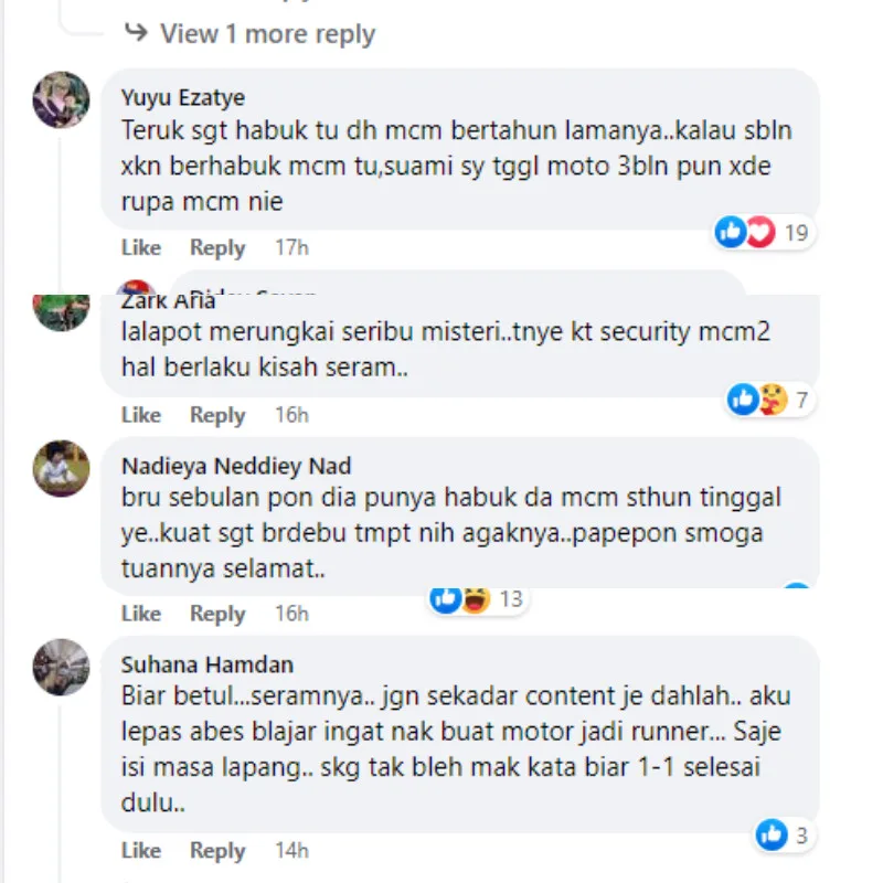 The creepy photo has gained 2.5k likes, over 400 comments and 249 shares on Niaga Kini. The post also mentioned that the Foodpanda bike is rumoured to had been abandoned for possibly a month yet no one has claimed it. The caption for the photo asked if anyone knows the owner as there had been no information on what might have happened to them.