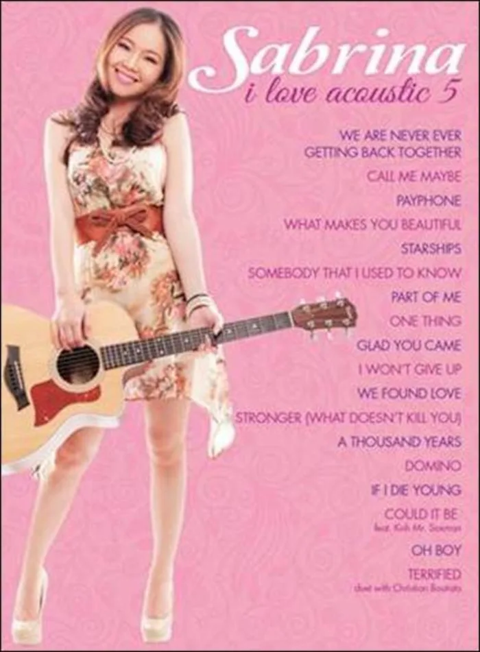 Like the previous “I Love Acoustic” series, “I Love Acoustic 5” includes the hits of 2012 interpreted by Sabrina in her signature acoustic style which enthralled listeners and audiences in Asia. What makes this special is her collaboration with 2 Asian artists—Thailand’s Koh Mr. Saxman for “Could It Be” (an popular Indonesian song translated in English) and Asiansation Christian Bautista, also a multi-platinum artist: