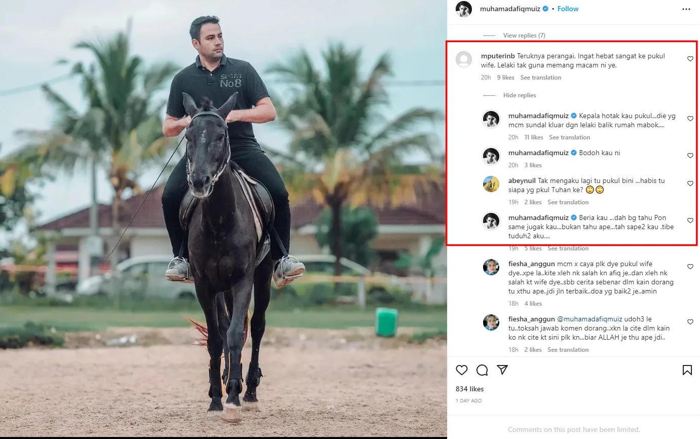 It looks like the story has yet to end as the actor himself has come forward to expose his soon-to-be ex-wife’s behaviour. The Kelantan-born celeb recently posted a photo of himself riding a horse on his Instagram with a caption that reads, “I didn’t expect the devil would still be around during Ramadan. Or rather, those are his followers”.