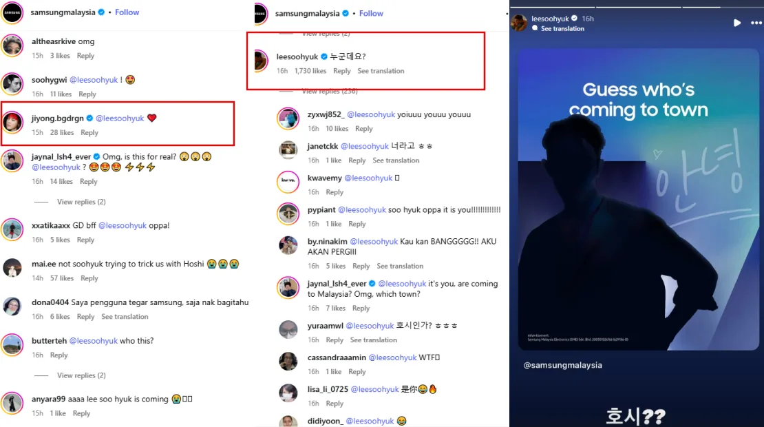 While nothing has been officially announced yet, it’s clear from the teaser and the celebrity’s cheeky reply that Lee Soo Hyuk is set to make a special appearance in Malaysia for an upcoming Samsung event. If everyone (highly unlikely) guessed wrong, then there’s no telling what the reaction will be like. Are you excited for the “mystery oppa” to be revealed soon?