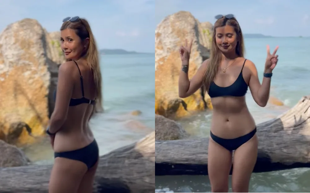 The 36-year-old, who is currently vacationing at Pulau Pangkor, Perak, donned a black-coloured bikini top which she paired with the bottom of the same colour in the video. She posted the clip with the caption “Forever island girl”, expressing that she is an island lover.