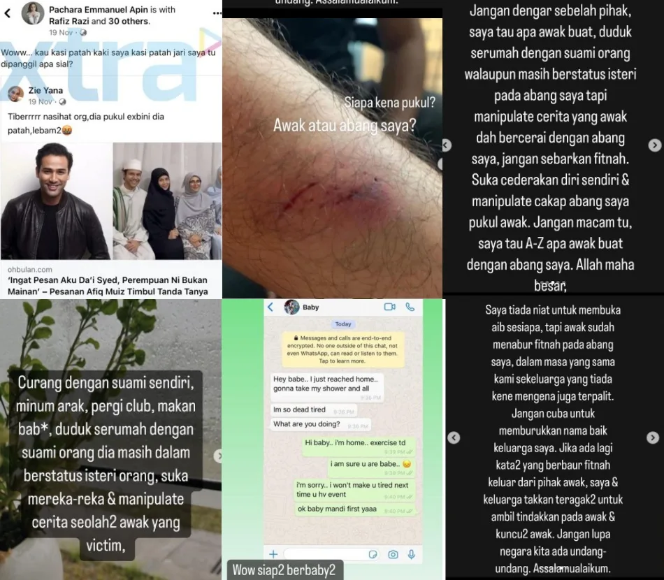 “You cheated on him, drank alcohol, went clubbing, ate pork, and even lived with a married man while you were also still married to my brother,” she stated. Aishah shared an alleged Whatsapp conversation between the model and another man to further prove her statement. The actress revealed that she hesitated in exposing her brother’s wife but felt compelled to after the actor’s image was tarnished.