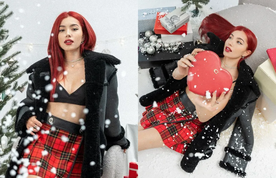 Sporting fiery red hair, the former child star was clad in a black brassiere underneath a cozy winter coat. She also complimented her rockstar chic look with a checkered skirt and a heart-shaped bag from the luxury brand. “Falling heart for you. Holiday mood and it’s time to feel the wonder,” Amelia captioned her post. The photos were also reposted on Oh My Media’s official FB page.