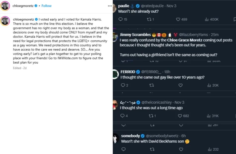 Over the weekend, actress Chloë Grace Moretz finally confirmed her sexuality as a gay woman in an Instagram post endorsing presidential candidate Kamala Harris. In the heartfelt message, the Hollywood star wrote, ” I believe the government has no right over my body as a woman, and that the decisions over my body should come ONLY from myself and my doctor. I believe in the need for legal protections that safeguard the LGBTQ+ community as a gay woman. We need protection in this country and access to the care we require and deserve.”