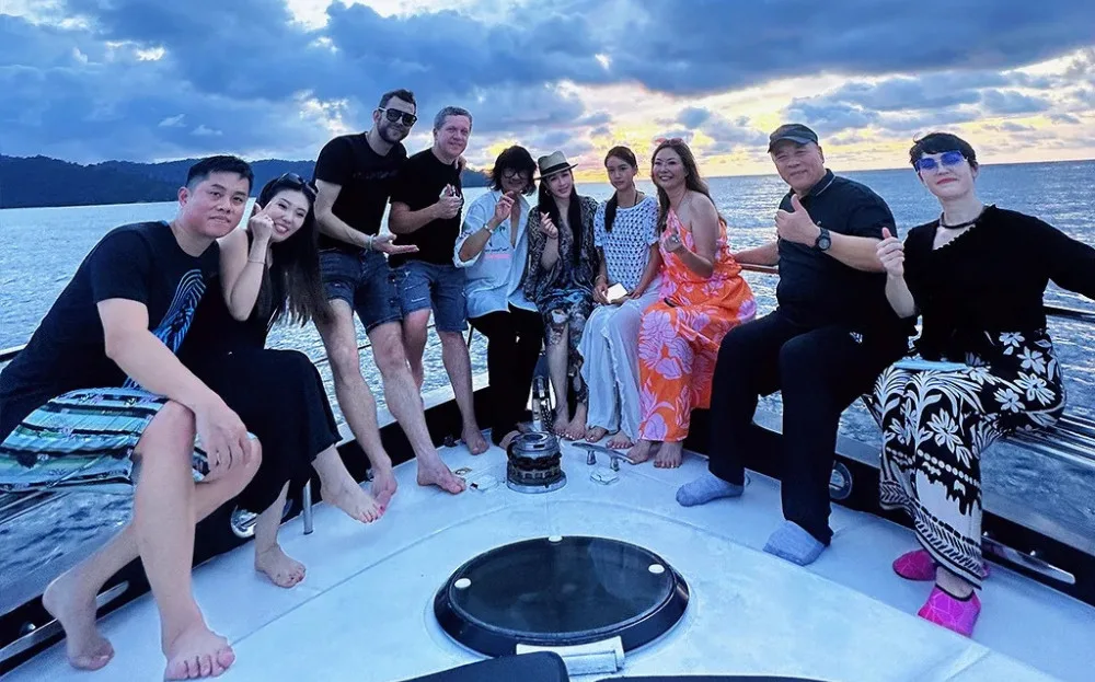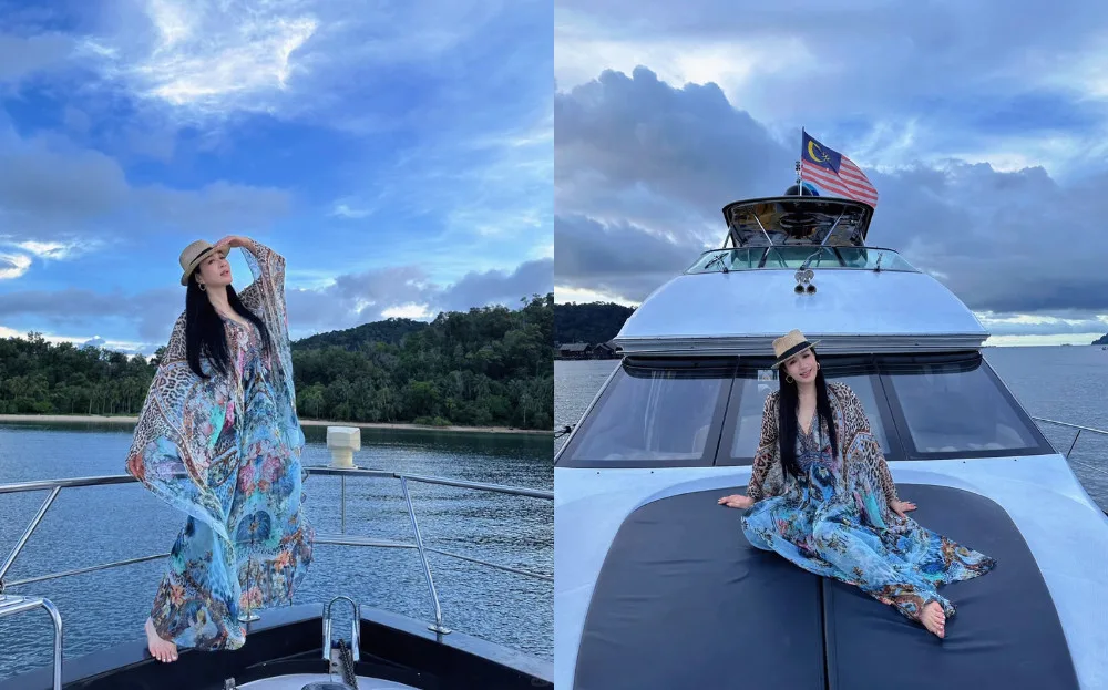 The actress shared the photos on XiaoHongShu, posting them with the caption, “I caught a super romantic sunset over the sea in Malaysia”. According to the post, Christy was in Malaysia on holiday with her husband, Shawn Zhang (张伦硕), and her daughter, Cayla. While in town, the family spent time with some friends and rented a small yacht to enjoy the sunset from the sea.