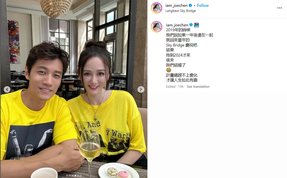Back in 2019, Taiwanese actress Joe Chen (陳喬恩) participated in the Chinese dating show ‘Meeting Mr Right 2’, where she met Malaysian artist Alan Chen (曾伟昌). The pair fell in love during the program and made it official soon after. Now, in 2024, the couple return to where it all began.