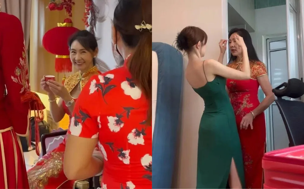 However, it seems the star became so emotional that she started tearing up as she drank her cup of tea. Of course, Lin Min-Chen’s parents also partake in the traditional ceremony – but netizens couldn’t help but be in awe of the public figure’s mother. Many in the comments praised her youthful appearance, particularly while wearing her red cheongsam. In another video, Lin Min-Chen showed off her close bond with her mother as she helped her apply makeup before the ceremony.
