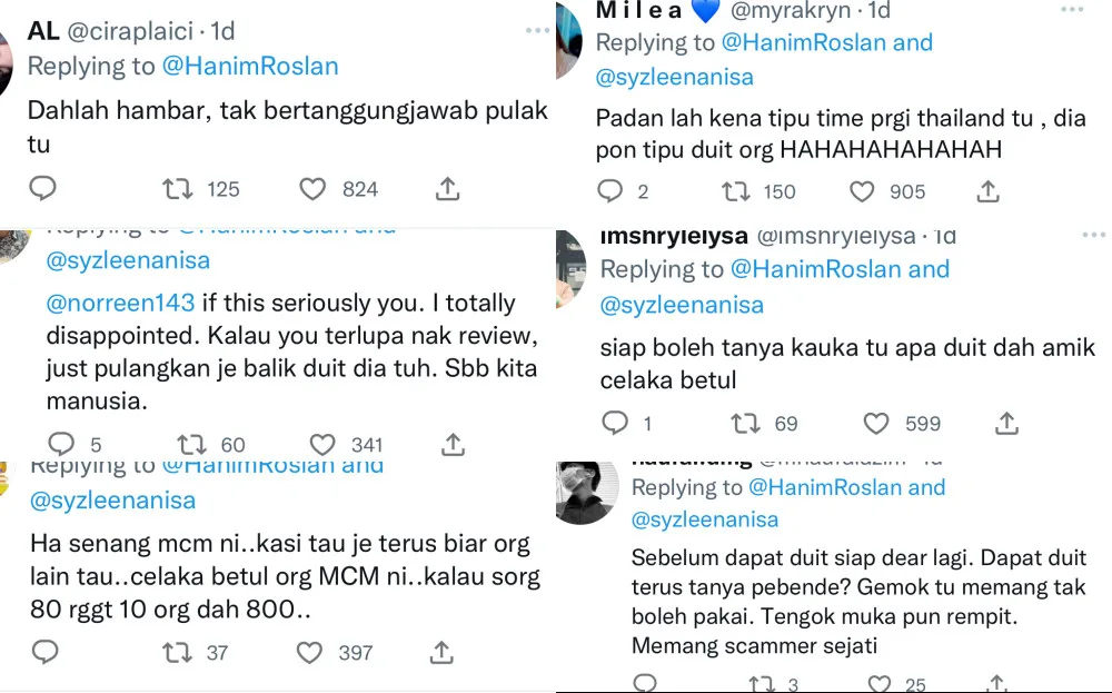 Despite the 28-year-old’s “apology”, netizens are still angry at her actions. Many even claimed that this issue was the reason why she was scammed during her Thailand trip. One shared their own personal story, alleging that they have been scammed by the influencer once before.