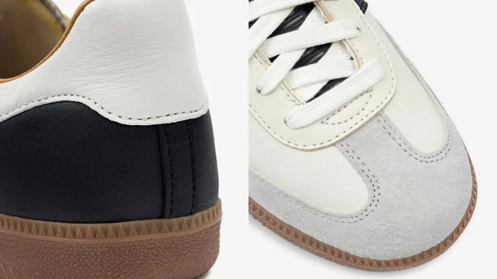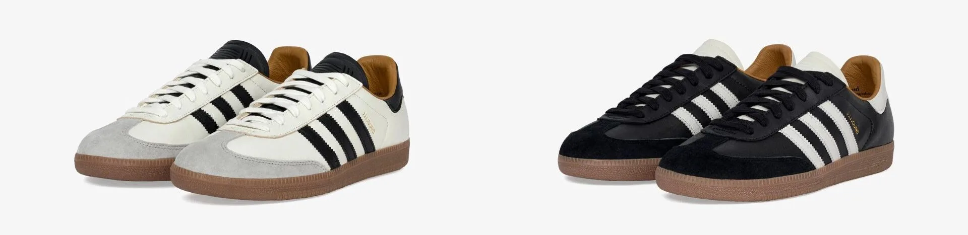 The signature Samba trainer gets a premium leather update in two colorways: black with white stripes and white with black stripes. There’s more than meets the eye, as each pair is meticulously crafted with the utmost attention to detail and enhanced with thoughtful touches such as co-branded sock liners and custom vintage hang tags.