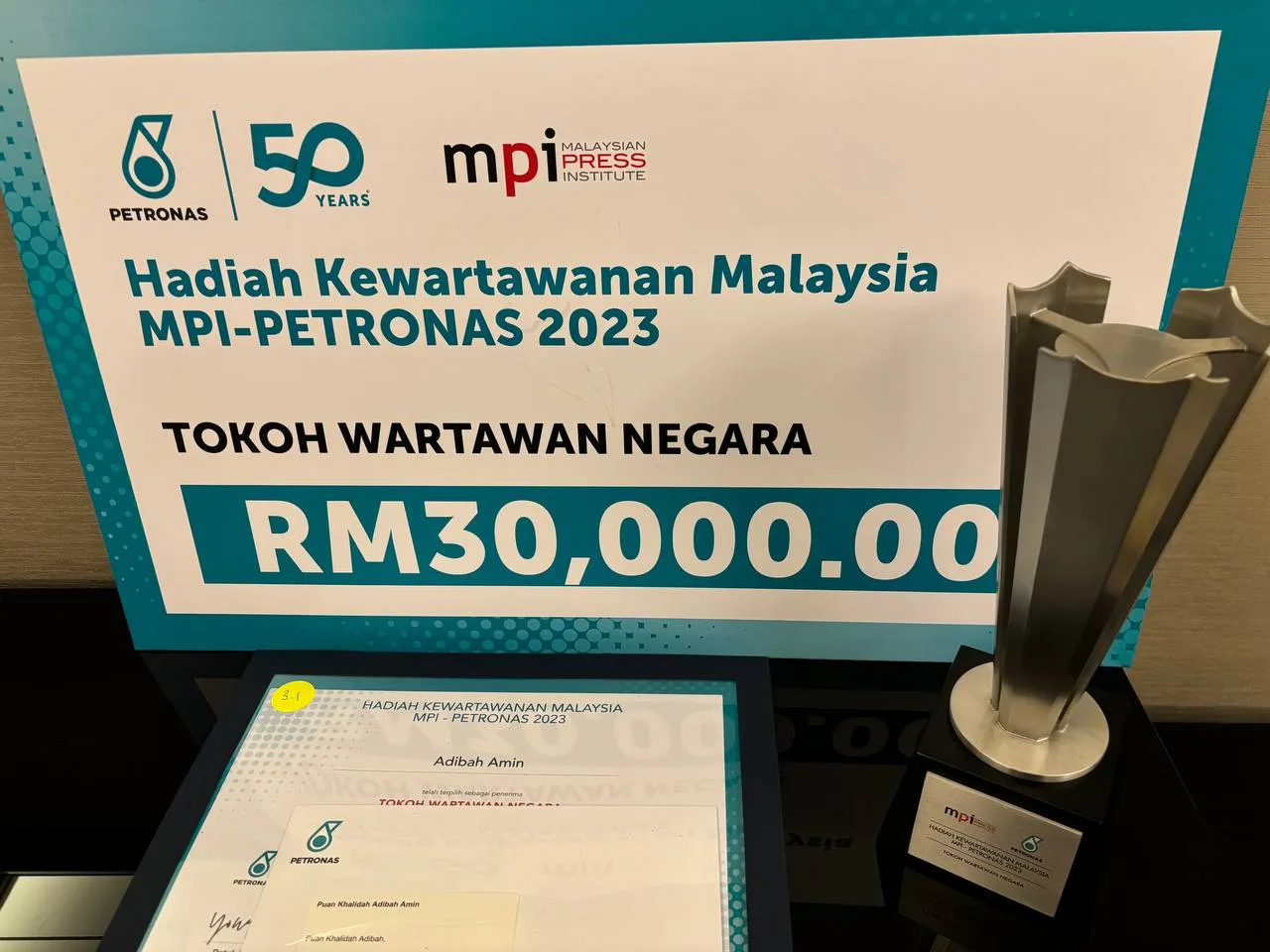 Adibah’s nomination as the first woman to receive the honour was proposed by the Malaysian Women Journalists Association (Pertama), however, due to health reasons, she sadly could not attend the event that evening. Instead, her younger sister Fadzilah Amin, accompanied by close family members accepted the award, presented by Prime Minister Datuk Seri Anwar Ibrahim, on her behalf.