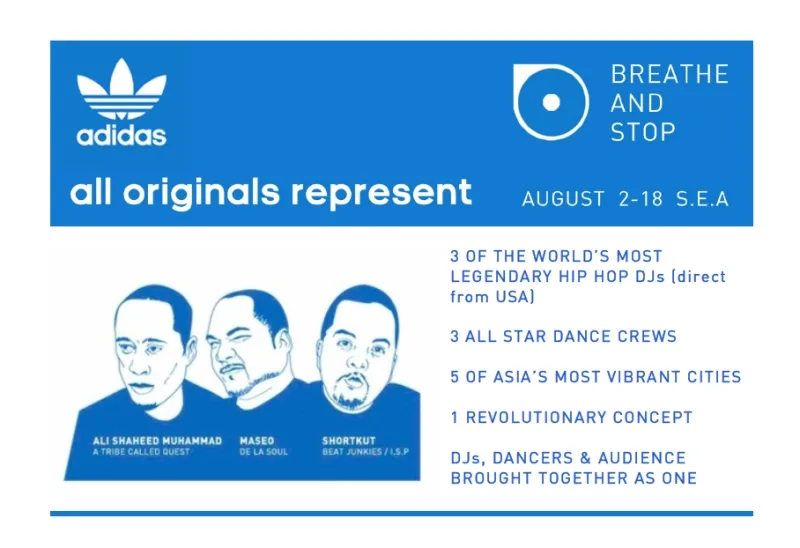 Presented by adidas Originals, the “Breathe and Stop” tour, which kicked off in Bangkok on August 4th, will follow in five of SEA’s most iconic cities. The cities that they’ll be invading are none other than Saigon (11th), Singapore (16th), and Manila (18th).