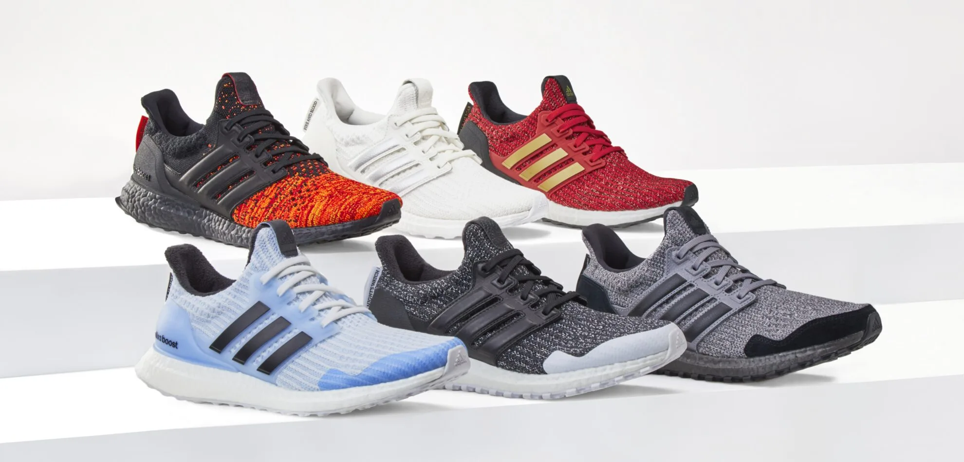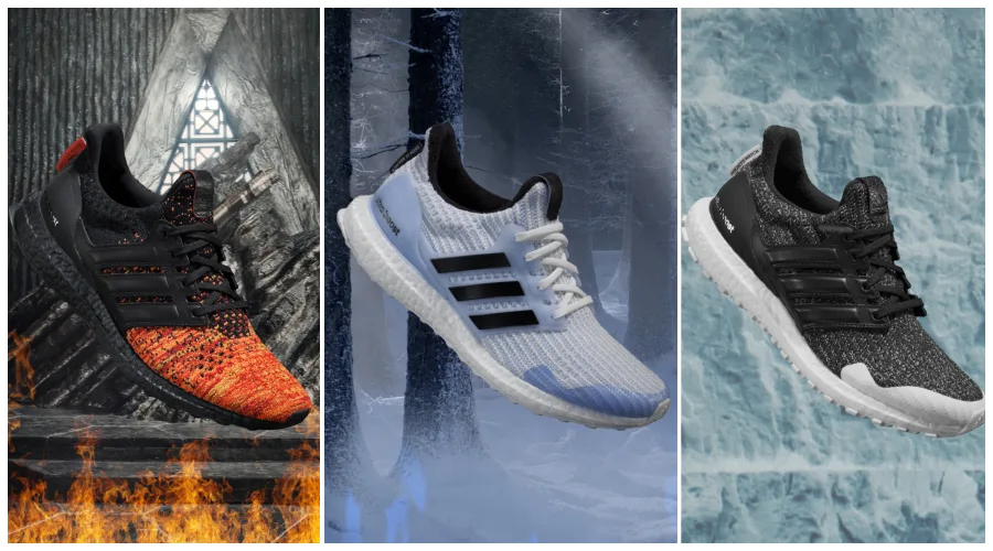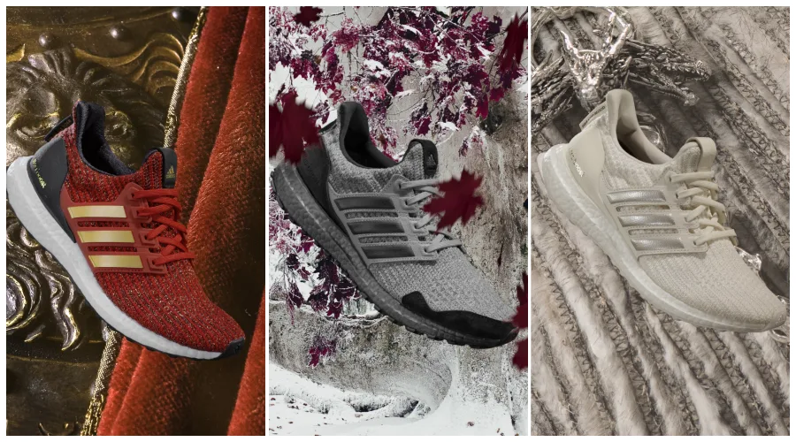 For instance, the Lannister Ultraboost features a red Primeknit upper with three gold stripes to mirror the House of Lannister.