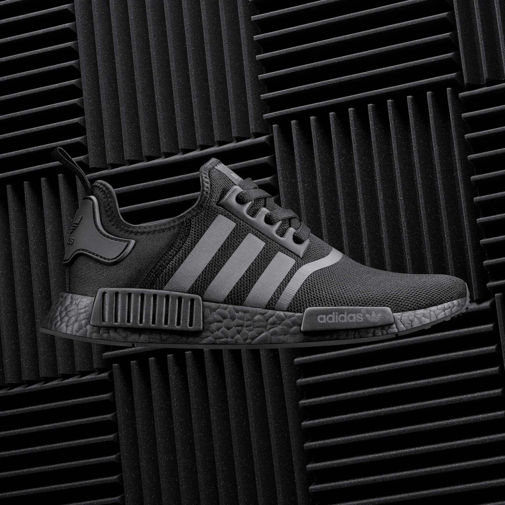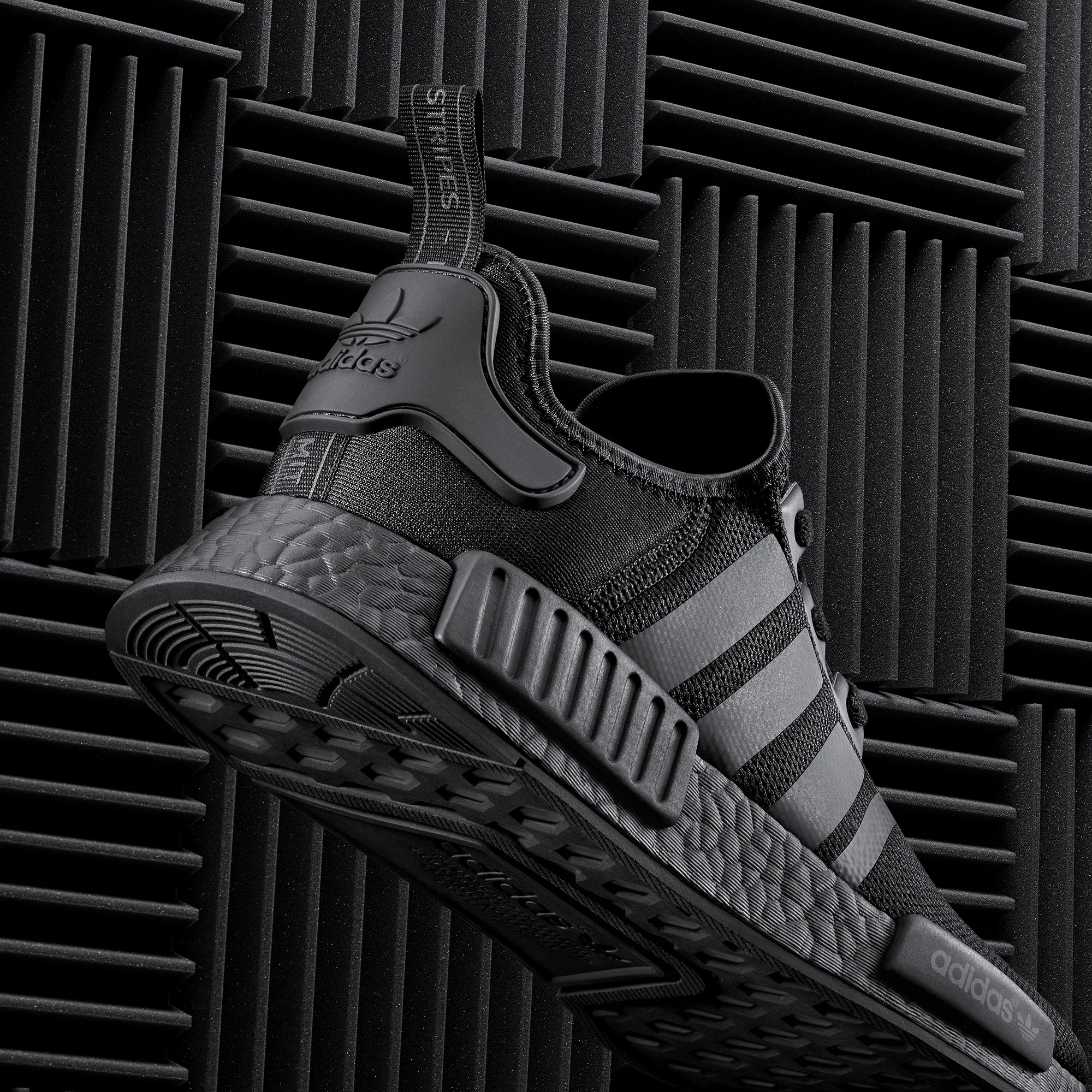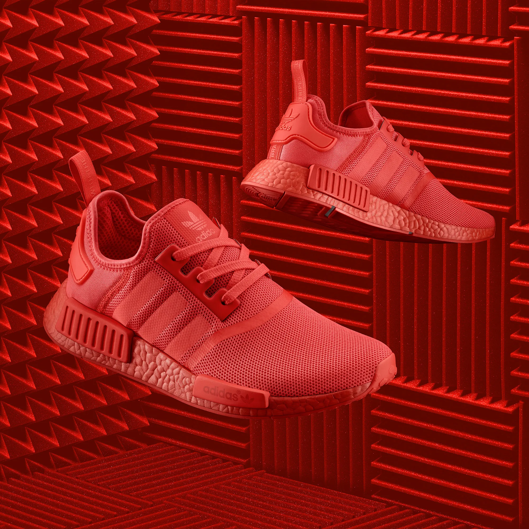 Taking a tonal approach to its first colour-blocked release, 2 iterations of the NMD_R1 feature tonal details in Solar Red and Core Black, from the stretch-mesh construction and welded three-stripes to the heel patch, three-stripes and iconic BOOST tooling, whilst an accompanying NMD_XR1 silhouette assumes a striking two tone effect in shades of black, featuring micro-rib knit and premium material overlays.