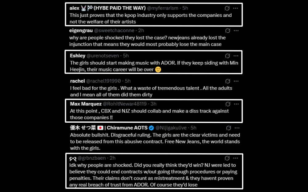 Following the ruling, many netizens expressed disappointment and sympathy for the members, with some saying they had already anticipated the outcome. Others drew comparisons to EXO-CBX’s legal battle with SM Entertainment. Some fans even joked that NJZ and EXO-CBX should collaborate, united by their shared struggles against their respective agencies.