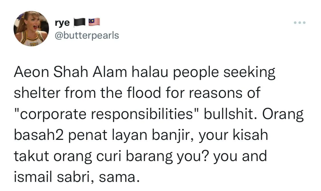 Despite negotiations by several of the victims, AEON was still persistent with their decision of not letting any of them in. This has incited anger amongst netizens upon seeing a big company like AEON prioritising their “corporate responsibilities”. A netizen on Twitter even went to the extent of equating AEON Mall Shah Alam to a certain politician.
