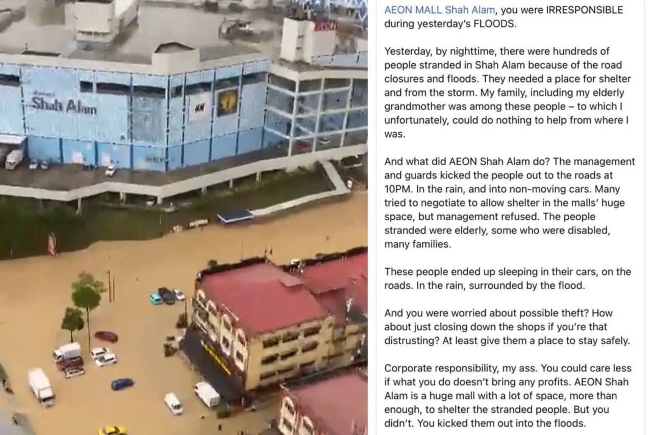 However, due to the Facebook post that went viral regarding this issue, AEON Mall Shah Alam released an official public statement apologising for their treatment towards flash flood victims who sought shelter. They have also provided refuge to 570 flood victims. “Despite being unprepared as well as lacking in manpower, we are doing everything that we can to ensure their (flood victims) comfort (while seeking shelter),“they tweeted on Sunday.