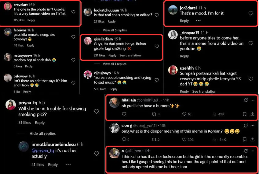 Many assumed she chose it because the girl in the video looks strikingly similar to her. Some fans in the comments even mistook it for a real clip and criticised her for smoking. Others quickly stepped in to clarify that it was just a meme. The moment showcased not only Giselle’s dry, self-aware humour but also how easily internet jokes can be misunderstood, especially when they hit close to home.