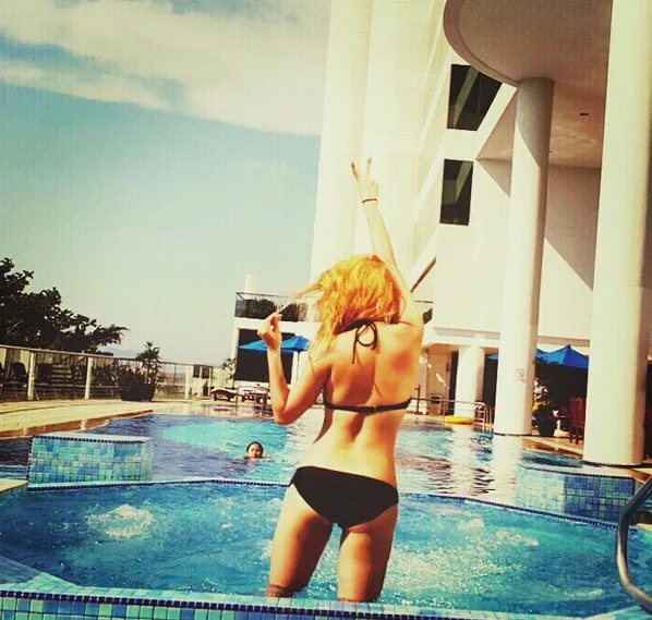 She first published a photo of herself (in a sexy black bikini, no less!) with her group of friends on 6th April, and they looked like they were having a mighty good time by a pool side. Oh, she also revealed her whereabouts via the hashtags #kotakinabalu, #poolside and #welovesun, just to name a few.