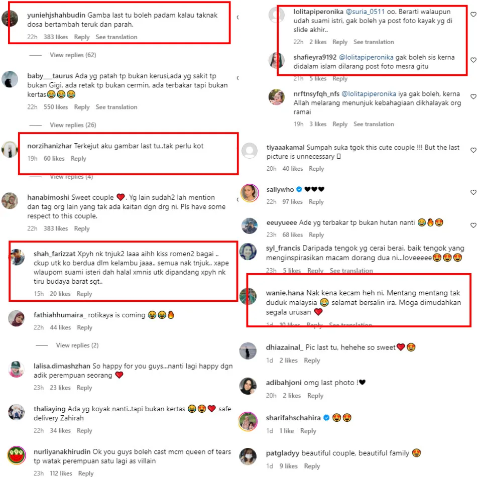 The photos showed the celebrity family having fun in the area but what caught fans off guard was the last photo where the “Kimchi Untuk Awak” star was seen kissing his wife on the lips. As expected, many were not so happy about the post, saying the intimate moment should’ve been private since the famous couple are Muslims. Some advised them to take down the last photo while others assumed that the two celebs purposely added the photo to rile netizens up.