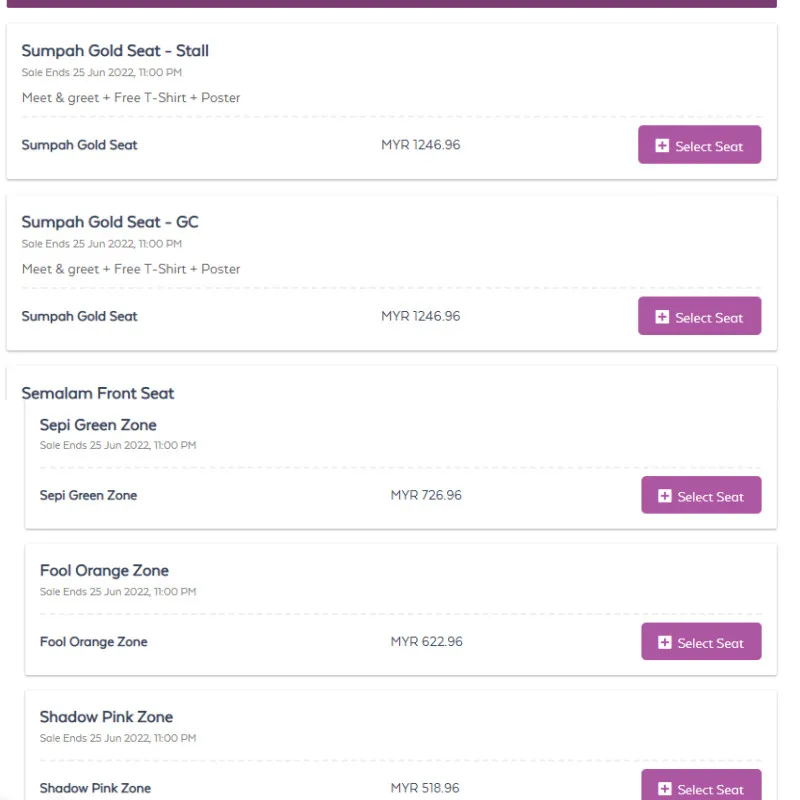 Fans took to social media to express just how shocked they are to find that Aina Abdul’s concert tickets can cost up to RM1,246.96. The cheapest ticket cost RM109 which means there’s almost 1000% gap between the cheapest and the most expensive. The tickets that cost RM1,246.96 are for the “Sumpah” Gold Seats.