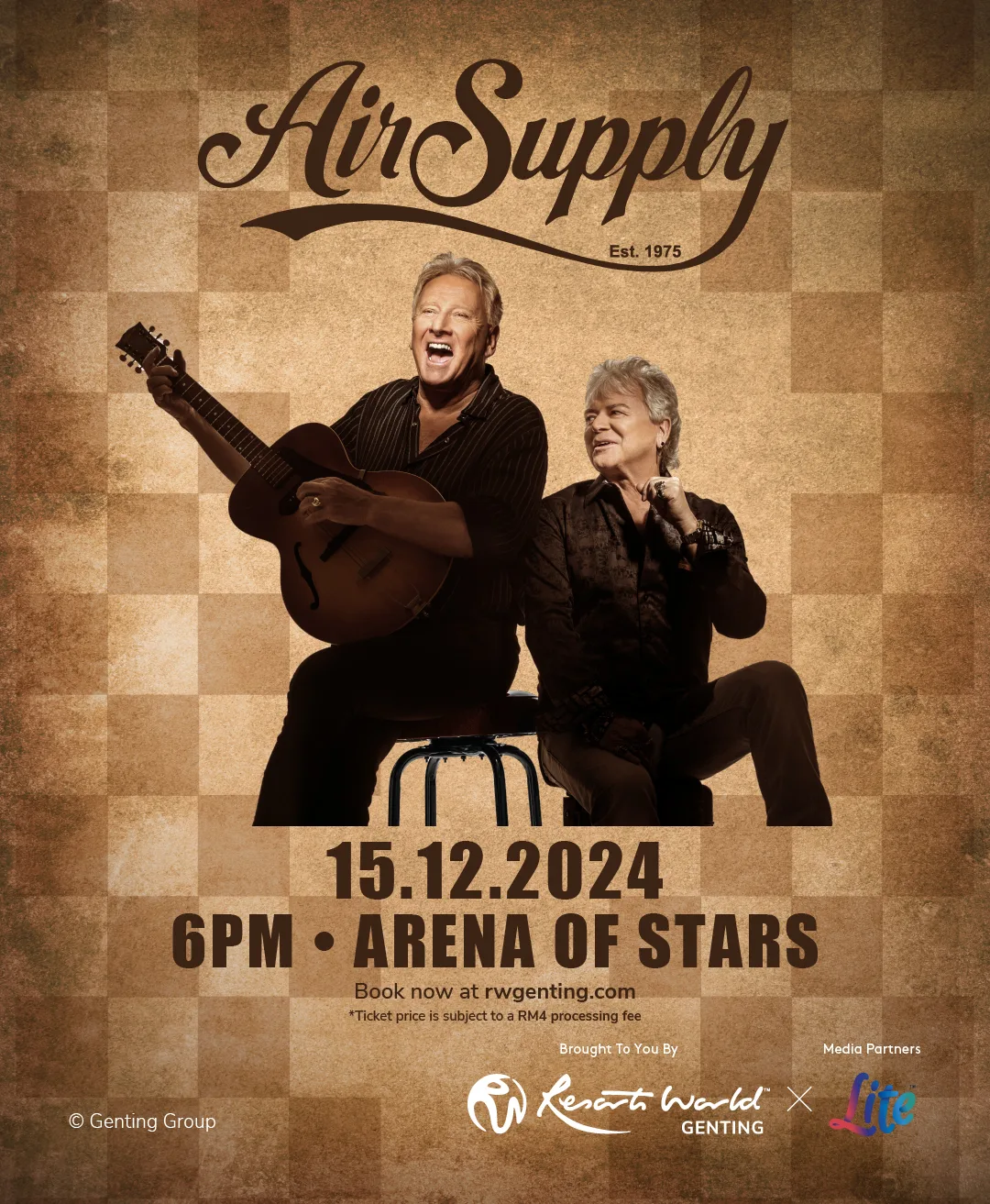 Experience the magic of Yuletide with iconic 80s Australian rock duo, Air Supply! The legendary hit-makers will once again traverse across continents to perform at the ever-popular holiday destination, Resorts World Genting as part of The Lost in Love Experience Tour this 15th December 2024 at 6pm.