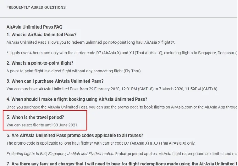 Also, based on the screenshot attached above, AirAsia Unlimited Pass will not include fights to Bali, Singapore, and Jeddah as well as fly-thru routes. In addition, the image shows that the pass was available for purchase from 29th February to 7th March 2020. For more info, y’all are free to visit its official website here.