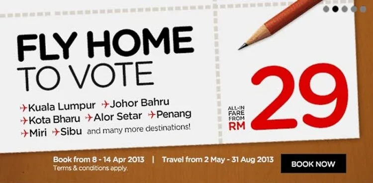 AirAsia Berhad estimates that over 30 thousand passengers will be flying daily on the budget airline during the election fever from the 4th till the 6th of May. Interested travellers must be registered Malaysian voters and are required to provide details such as: