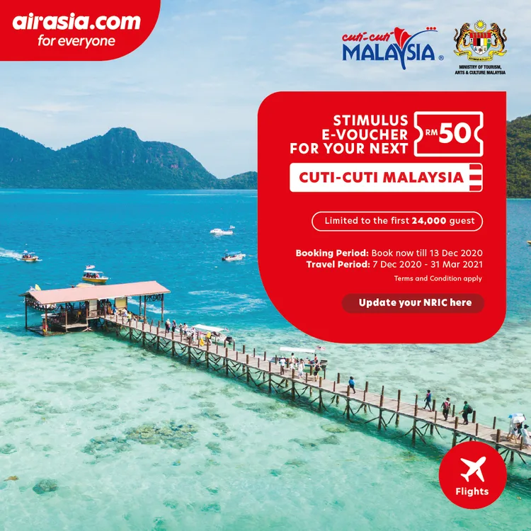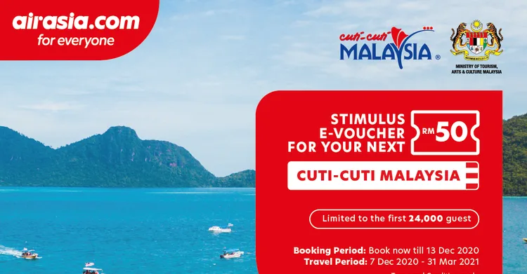 #AirAsia collaborates with @TourismMalaysia to offer Cuti-Cuti Malaysia RM50 e-voucher to drive domestic tourism.