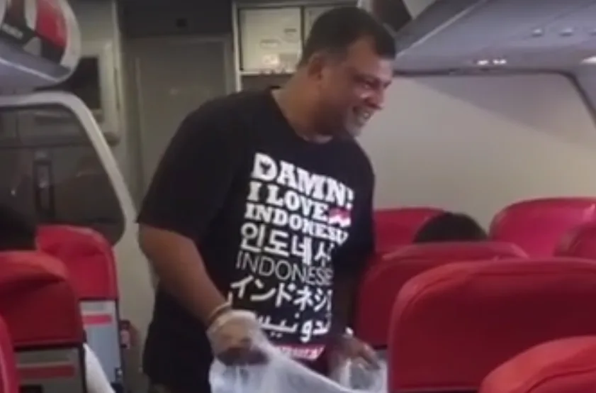 A video posted by the AirAsia CEO showing him collecting rubbish from passengers has gone viral, amassing more than 400k views on Instagram and Facebook in less than a day.