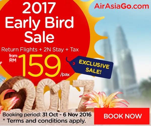 Get big savings up to 45% when you book your travel package (flight + hotel) through AirAsiaGo, Malaysia’s leading one-stop travel portal. The early bird catches the worm though so get in quick and login to AirAsiaGo to book your vacation from 31st October and 6th September 2016, before they slip away. From as low as RM159 per person for 3 Days 2 Nights, including flights, hotel stays and tax, it is time for you to start planning your adventures in 2017.