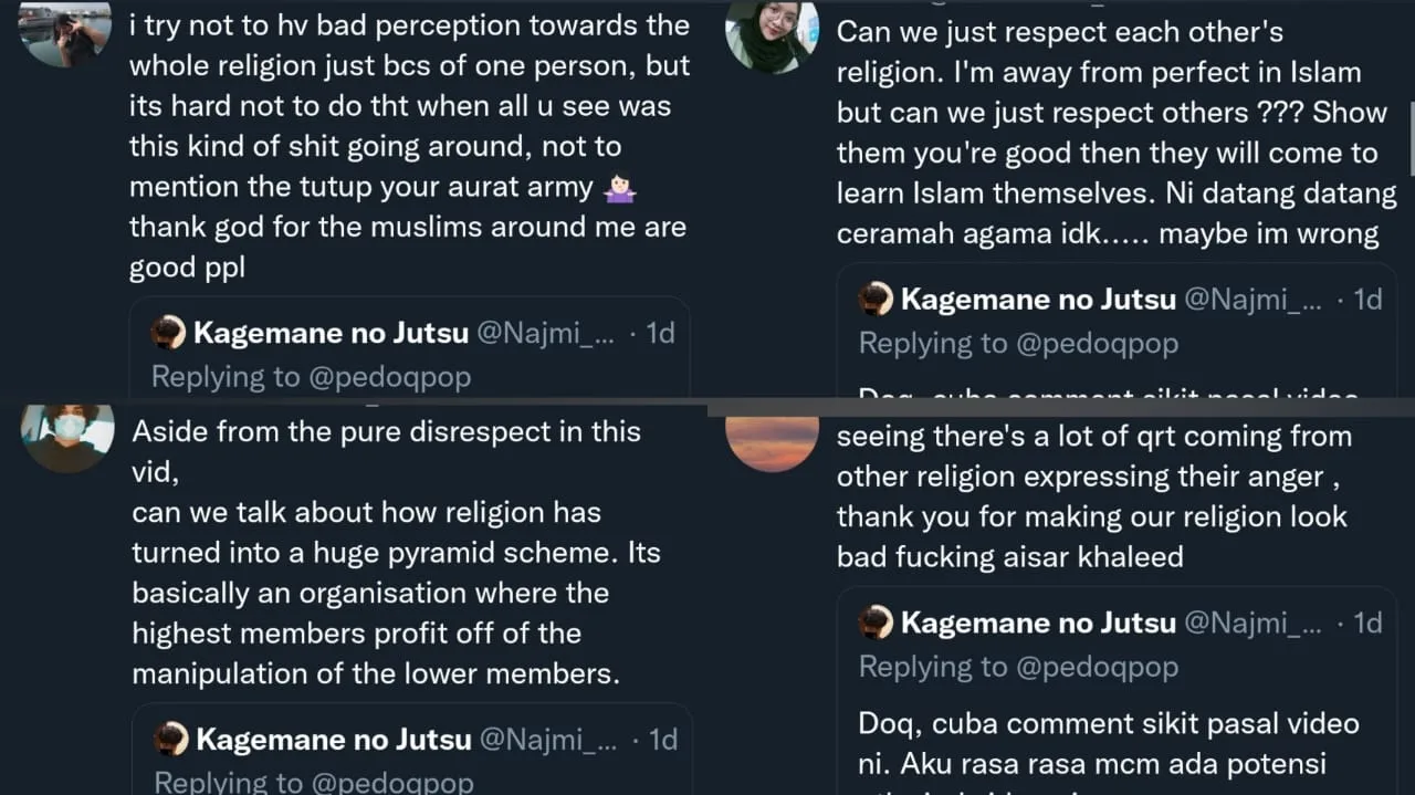 However, despite his explanation, netizens still ponder on the relevancy of his action. There are also those who feel that Aisar’s action is offensive and disrespectful to other religions. Some even questioned his qualification and credibility to preach to people as he has no solid religious education background to support his da’wah method.