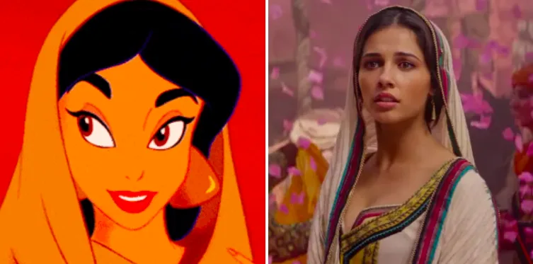 2. Princess Jasmine (Naomi Scott) disguising herself as one of the commoners as she explores a local market.