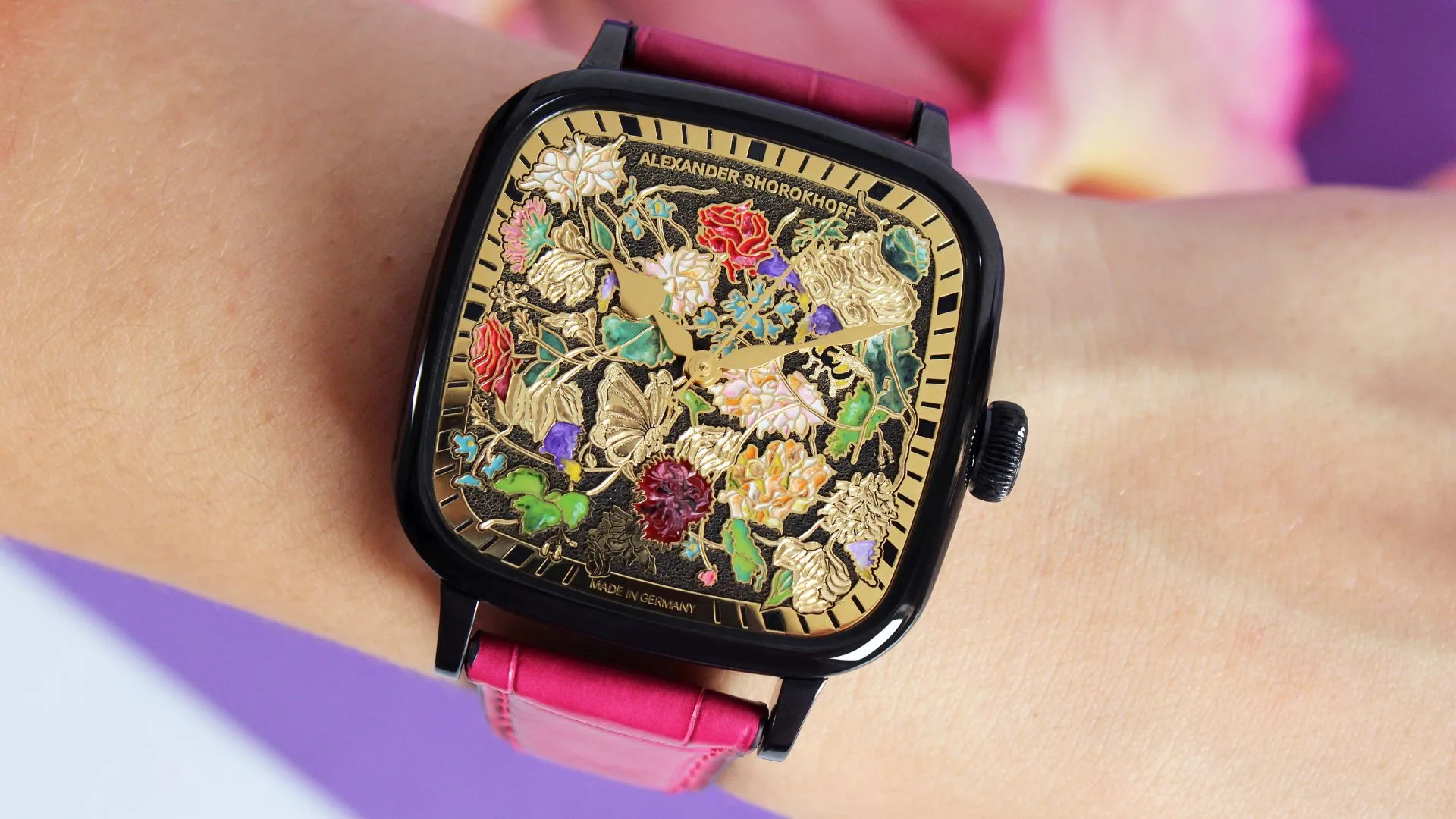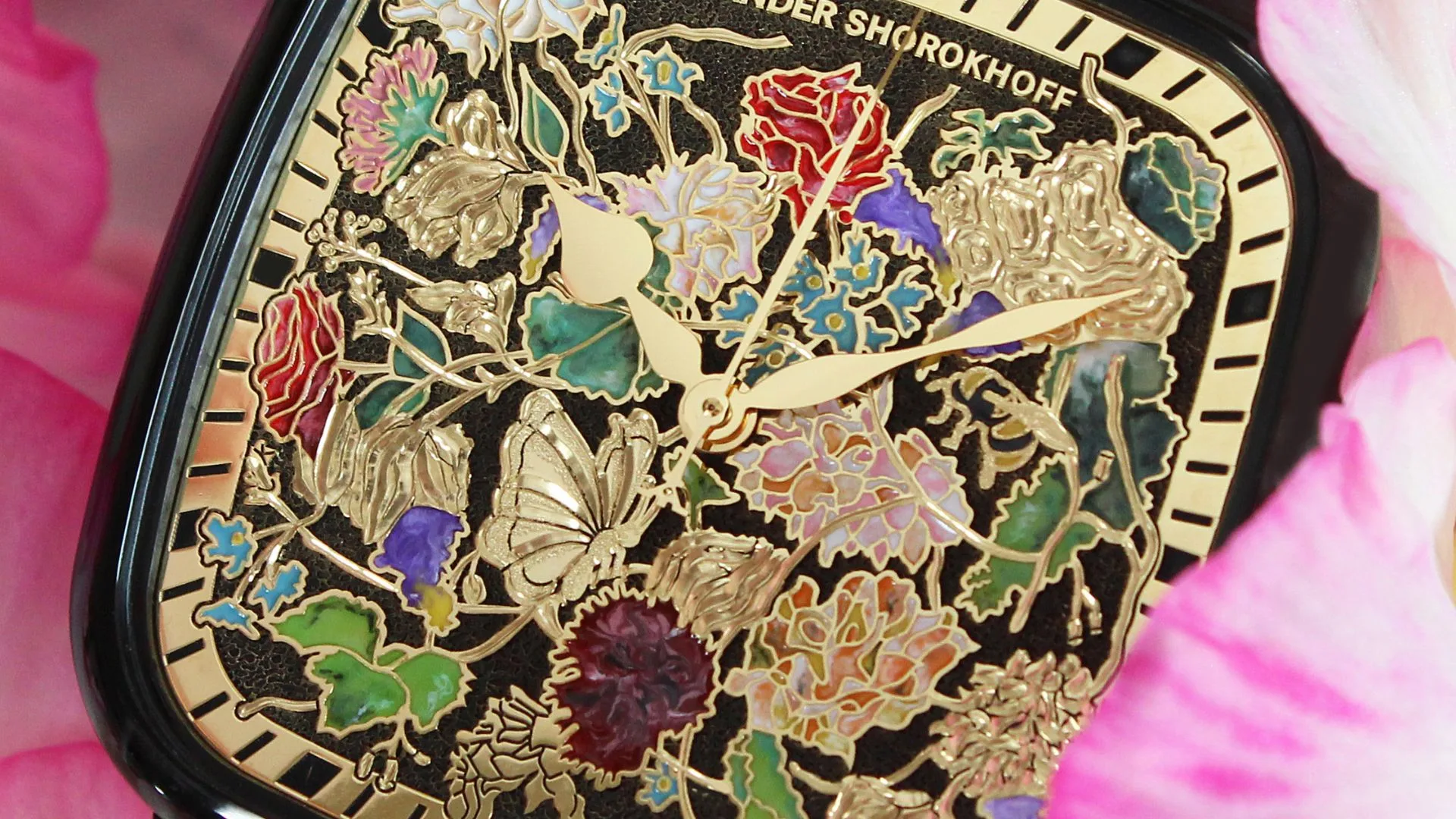 Only after this meticulous process was the dial refined with elegant yellow gold, and then the enamel was applied by hand, giving each petal an unparalleled vibrancy.