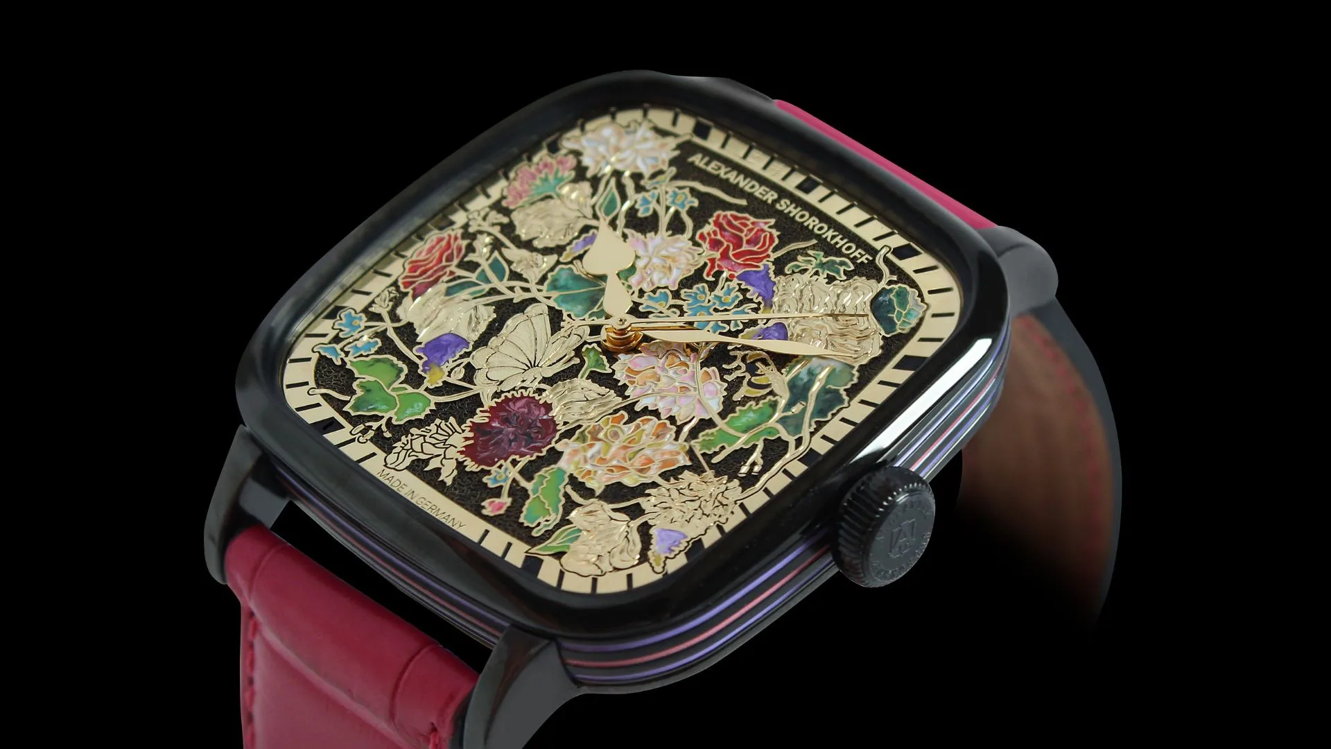 To perform this fine and precise work, a lug-free case is required. Each colour is carefully applied in different time intervals and then dried, creating a unique and detailed finish.