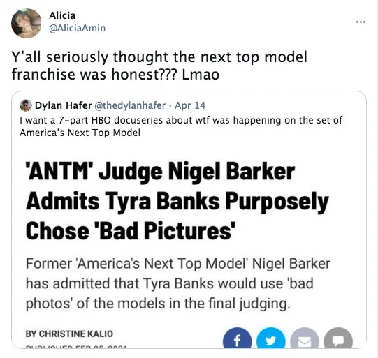 As mentioned earlier, Nigel’s statement has also caught the attention of “Next Top Model” alum Alicia herself. She wrote on her Twitter, “Y’all seriously thought the ‘(Next) Top Model franchise was honest??? LMAO.” She tweeted in response to a fellow Twitterverse member, Dylan Hafer, who demanded HBO to produce a “7-part docuseries” on what was happening on the set of the popular reality series.