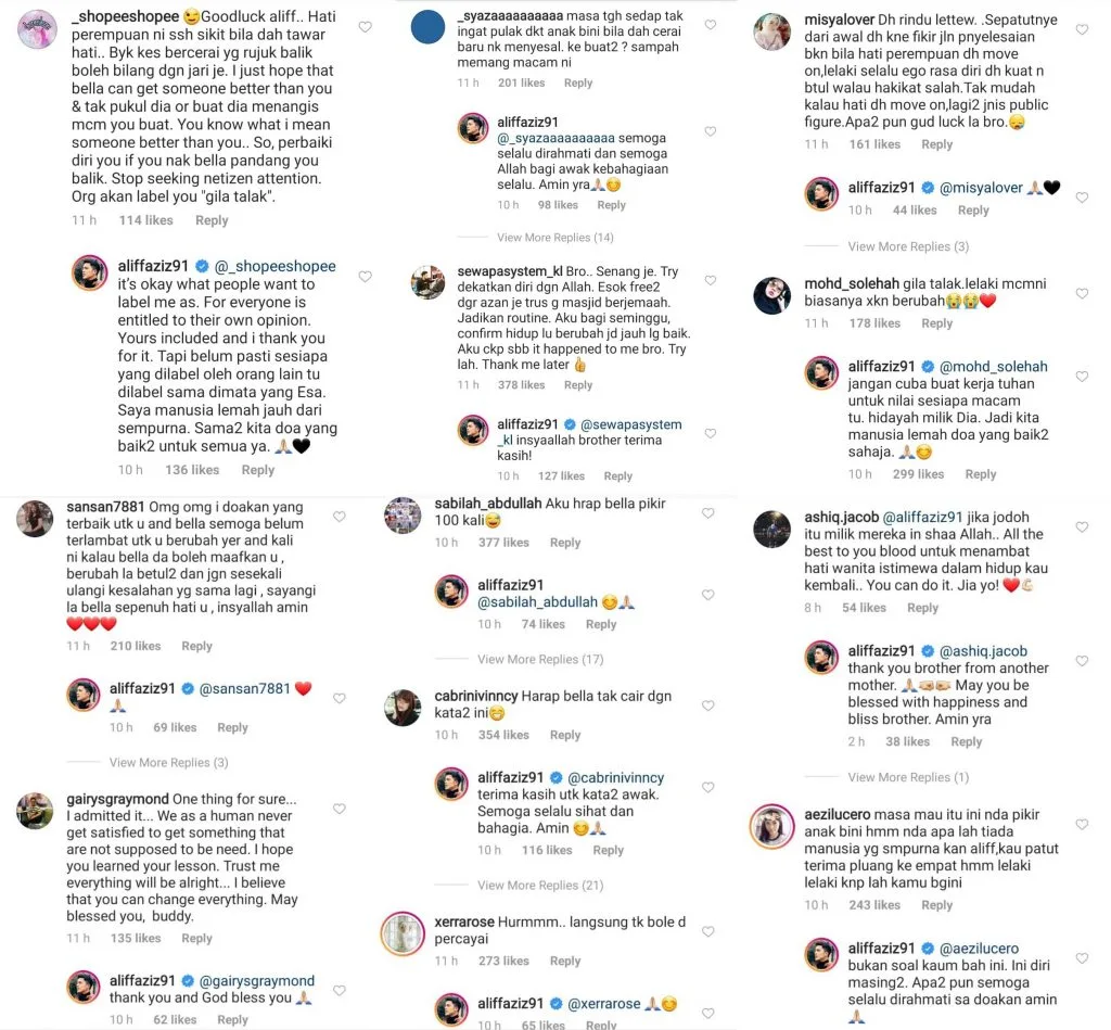 Aliff added he is currently amending his relationship with Allah after the wrongdoings that he had done and he wishes the best for Bella and her family.