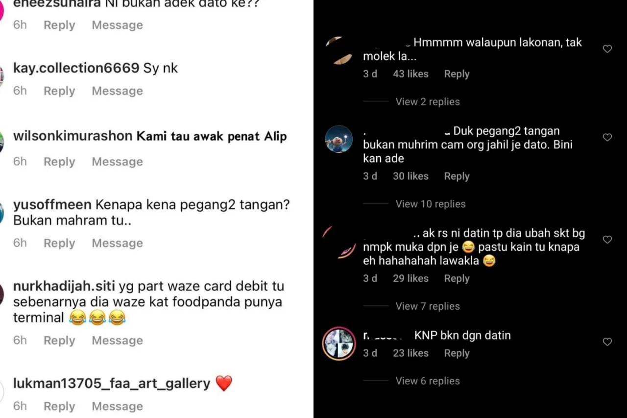 “It’s better to act in those scenes with your own wife. As an outsider, I felt uncomfortable watching the video. The scenes would come out even sweeter if you acted with Datin,” commented one netizen. Another netizen remarked, “Why do you need to hold hands with the actress? She’s not your mahram. Putting the acting aside, please don’t be silly.”