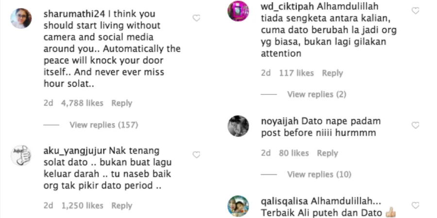 Scrolling through the comments, a number of netizens expressed their gratitude knowing that the two have reconciled. They also suggest for Dato’ Aliff to distance himself from social media.