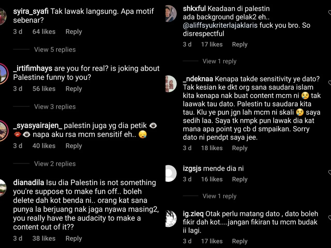 - “I don’t think it’s funny to use the Palestinian issue for this kind of video. Please, the Palestinians are still traumatised with the ongoing wars. They even lost their family members. And you simply mock them like this.”