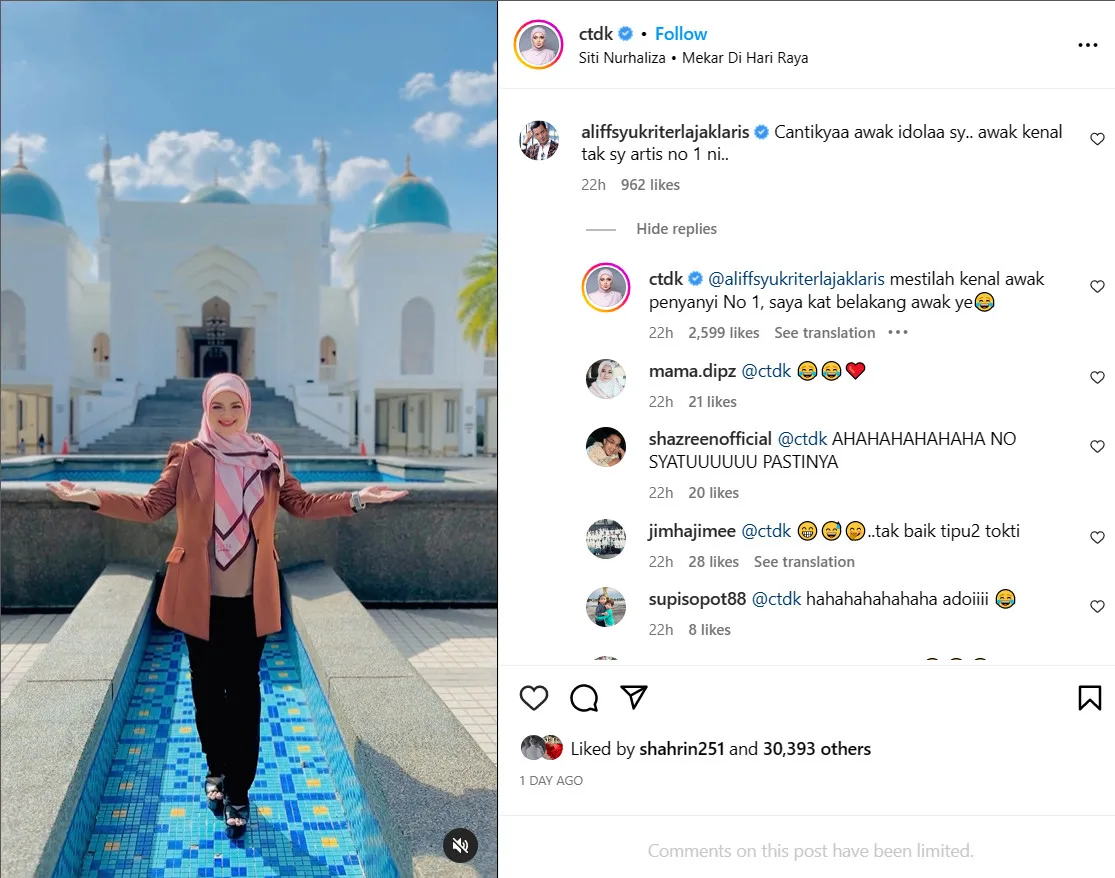 Just recently, Aliff revealed that he has decided to return the “title” back to TokTi. In a video posted on the TikTok page @butik.ashijab, the former’s mom, Bonda Rozita brought up the viral issue regarding his past comment on the “Anugerah Juara Lagu” winner’s IG post.