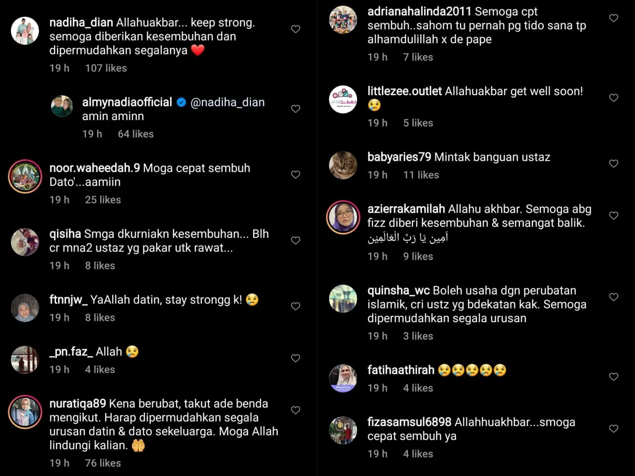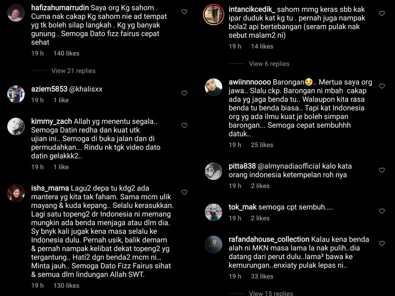 There are also some who share their views and experiences about the supernatural disturbances and remarked that such matters should be taken seriously. We also hope for Datuk Fizz Fairuz to regain strength and pray for his speedy recovery.
