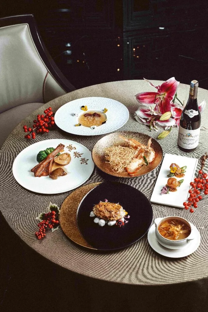 Experience culinary excellence at the award-winning Wan Chun Ting, where traditional meets modern in a symphony of Imperial and authentic Cantonese cuisine. The Festive Special 6 Course Set Menu includes stuffed crab shell with fresh crab meat, double-boiled chicken soup with Chinese herbs, braised 5-head abalone with sea cucumber and goose web with broccoli, wok-fried asparagus with scallops in XO sauce, Cantonese style crispy noodle with fresh water prawn, and complete your meal with a chilled hasma and aloe vera with red dates. The Festive Special 6 Course Set Menu selection at Wan Chun Ting is priced at RM338+ per pax.