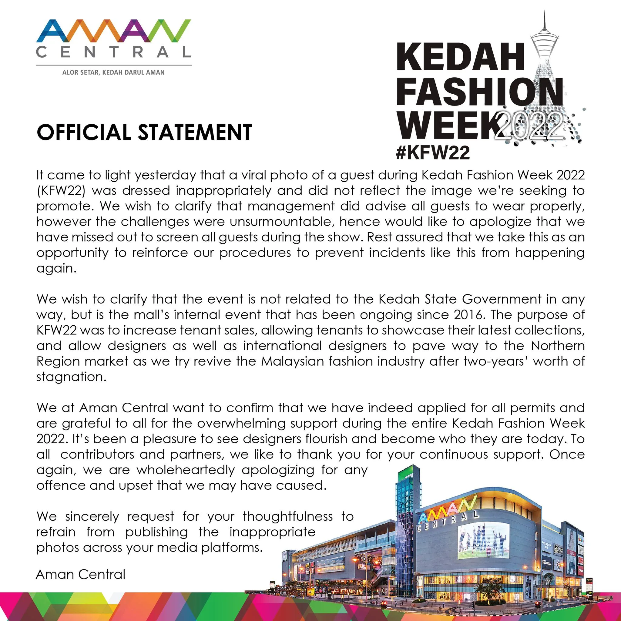 The organisers of the Kedah Fashion Week 2022 (KFW 2022) found themselves in trouble recently after one of their guests showed up without wearing a bra at the event. In case you don’t know, the fashion event took place from 5th to 7th August at the Aman Central mall in Alor Setar.